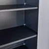 The Mega-M metal office filing cabinet provides easy access and secure storage for office documents. The furniture is made of powder-coated steel sheet in grey (RAL 7035). The filing cabinet has 4 levels of shelves with the possibility of changing the height. The furniture has a three-point lock which restricts access to files by unauthorised persons. The maximum load of the shelves is up to 30 kg. The office cabinet is designed for self-assembly
