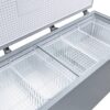 - The freezer body is made of powder-coated steel.