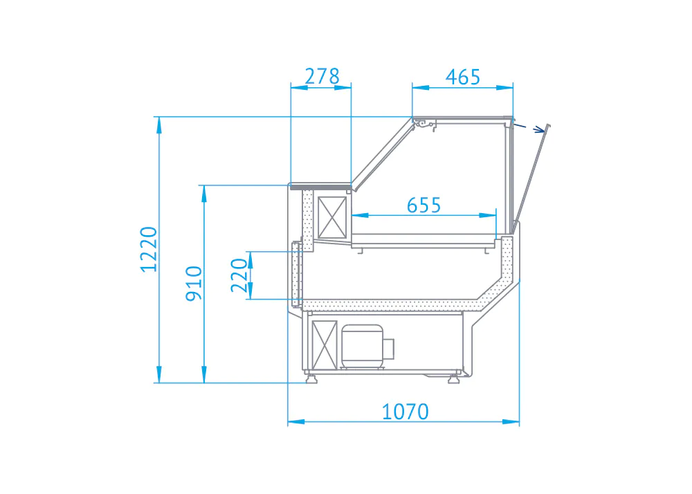 - Electronic temperature controller with display on the operating side – ( temperature range +1°C +10°C ).