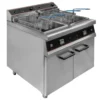 The Mega-M fryer is the perfect choice for both small and large catering establishments with medium to high customer traffic. It features two cooking chambers, which make it easy and quick to prepare a wide variety of dishes. In addition, the fryer has an integrated cabinet where you can conveniently store useful dishes, tools and other cooking essentials.