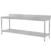 is an essential piece of equipment in all back of house catering areas where large quantities of food are prepared. The two-tier table can be used in catering establishments, large and small grocery stores, butcher shops, canteens and mass catering establishments.