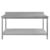 The Mega-M stainless steel catering table with edge and shelf is designed for professional kitchens.