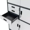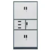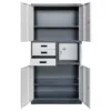 Metalinė biuro spintelė Mega-M su ​​lentynomis, bei stalčiais leidžia saugiai laikyti: sutartis, bylas ar sąskaitas faktūras pagal GDPR reikalavimus. Metalinė spintelė idealiai tinka: biurams, klinikoms, sekretoriatams, bibliotekoms, biurams, mokykloms, biurams ir ligoninėms. Dėl patogių stalčių joje taip pat galima laikyti vaistus, medicininę įrangą arba biuro reikmenys. Daugiafunkcinė metalinė spintelė leidžia laikyti trijose atskirose sekcijose, rakinama raktu.