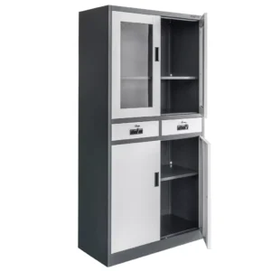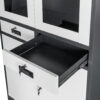 Metalinė biuro spintelė Mega-M su ​​lentynomis, bei stalčiais leidžia saugiai laikyti: sutartis, bylas ar sąskaitas faktūras pagal GDPR reikalavimus. Metalinė spintelė idealiai tinka: biurams, klinikoms, sekretoriatams, bibliotekoms, biurams, mokykloms, biurams ir ligoninėms. Dėl patogių stalčių joje taip pat galima laikyti vaistus, medicininę įrangą arba biuro reikmenys. Daugiafunkcinė metalinė spintelė leidžia laikyti trijose atskirose sekcijose, rakinama raktu.