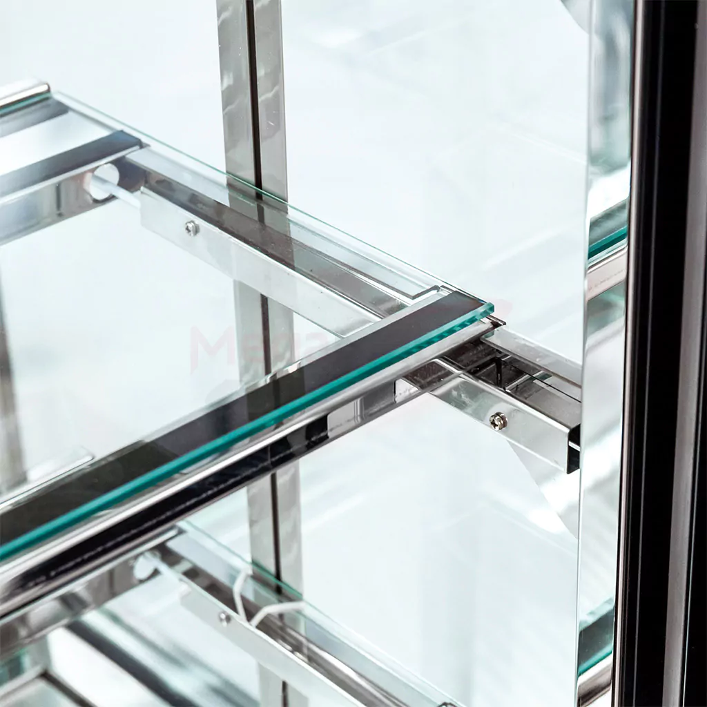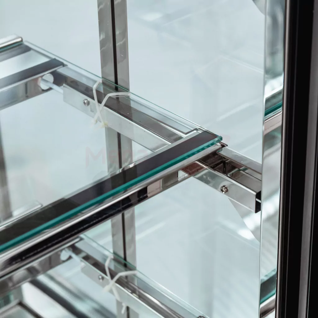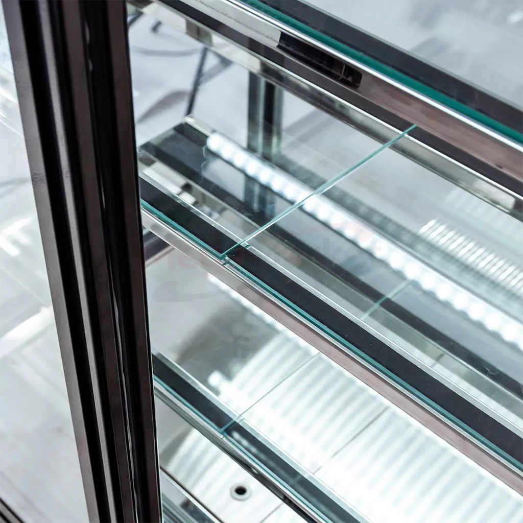 Konditerijos gaminių vitrinos Mega-M pagaminta iš dvigubo stiklo. Šio sprendimo dėka konditerijos prekystalis išlaiko aukštas vėsinimo savybes, kurios garantuoja maksimalų šalčio nuostolių sumažinimą ir mažas elektros sąnaudas.