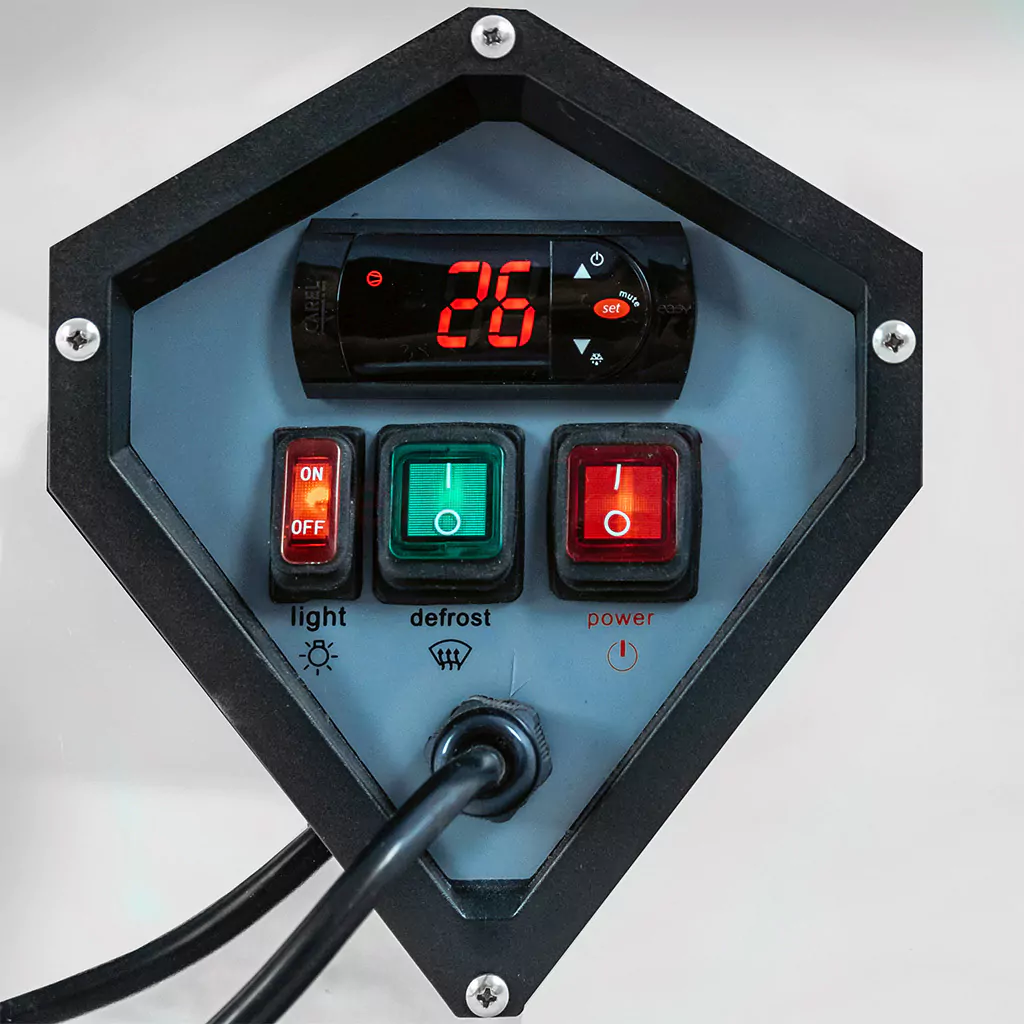 Elektroninis valdymo pultas su skaitmeniniu ekranu iš garsaus prekės ženklo Carel leidžia nustatyti temperatūrą nuo +2 iki +8 °C.