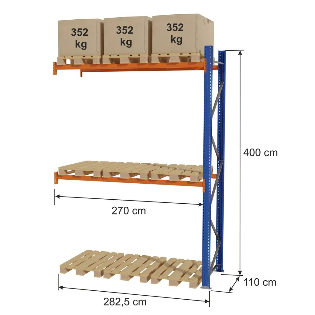 MAGO HX papildomas modulis , 200 cm aukščio, 188 cm ilgio, 75cm gylio, lentynos matmenys: 180 × 75 cm. Didžiausia 1 lentynos apkrova 900 kg tolygiai paskirstant apkrovą.