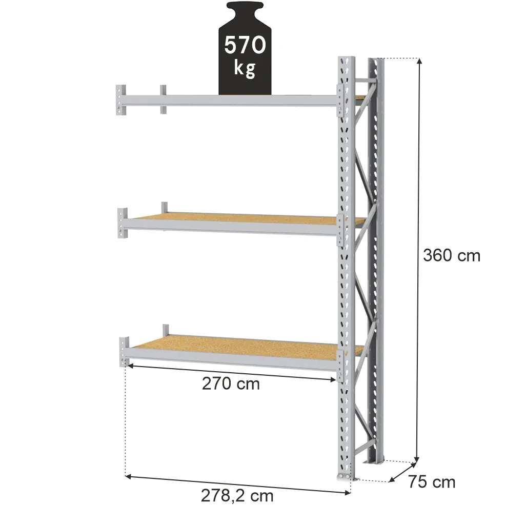 - Didžiausia apkrova vienoje lentynoje 570 kg tolygiai paskirstant apkrovą.