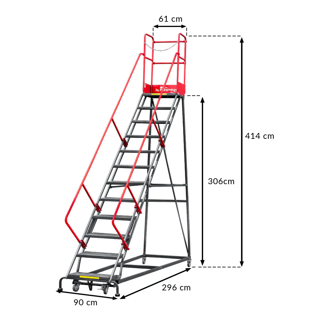 Sandėlio kopėčios mobilios saugojimo platformos Mega-M H 306 cm