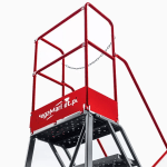 Keturių pakopų platformos „Mega-M“ kopėčios garantuoja saugų darbą ir naudojimo patogumą.