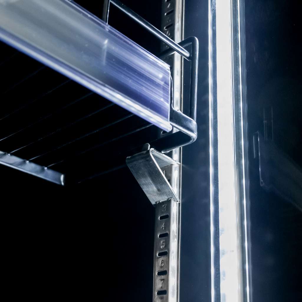 Be to, vitrininis šaldytuvas R62 Prestige yra aprūpintas efektyviu LED apšvietimu, kuris puošia turinį ir sukuria patrauklią vizualinę pristatymą. Viduje esantis LED apšvietimas padidina gėrimų matomumą, dar labiau žavindamas klientus.